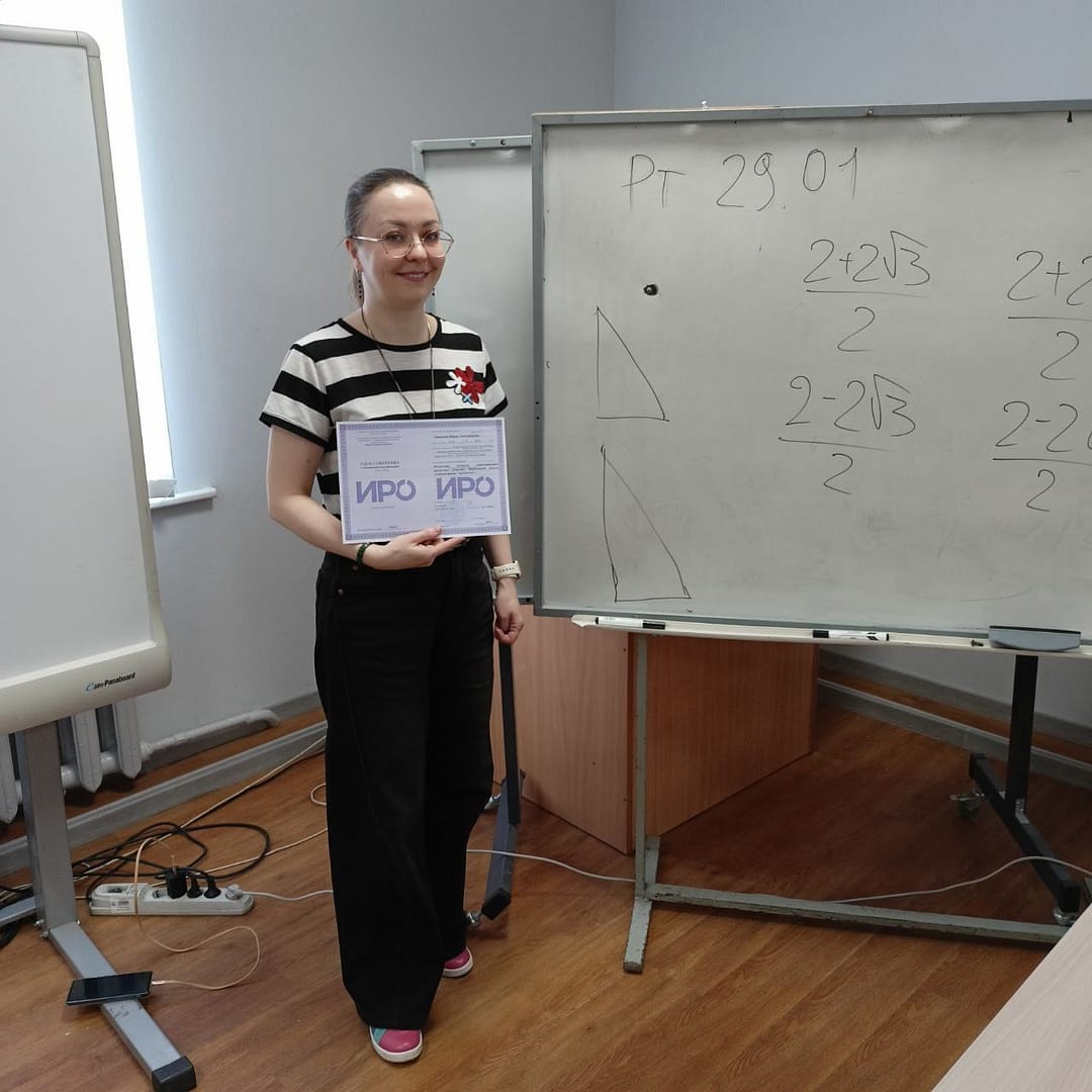 👩🎓С 4 по 6 марта 2025 г. Мария Александровна прошла в Институте развития образования Свердловской области курсы повышения профессиональной квалификации как эксперт государственного экзамена. В ходе обучения участники изучали изменения подходов к оцениванию развернутых ответов экзаменационных работ государственной итоговой аттестации. По результатам трехдневных курсов и итоговой контрольной Мария Александровна Ушакова подтвердила свой уровень ведущего эксперта предметной комиссии по математики.