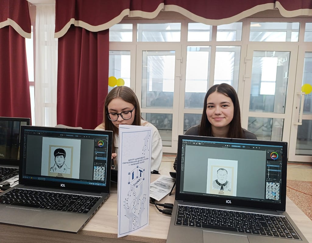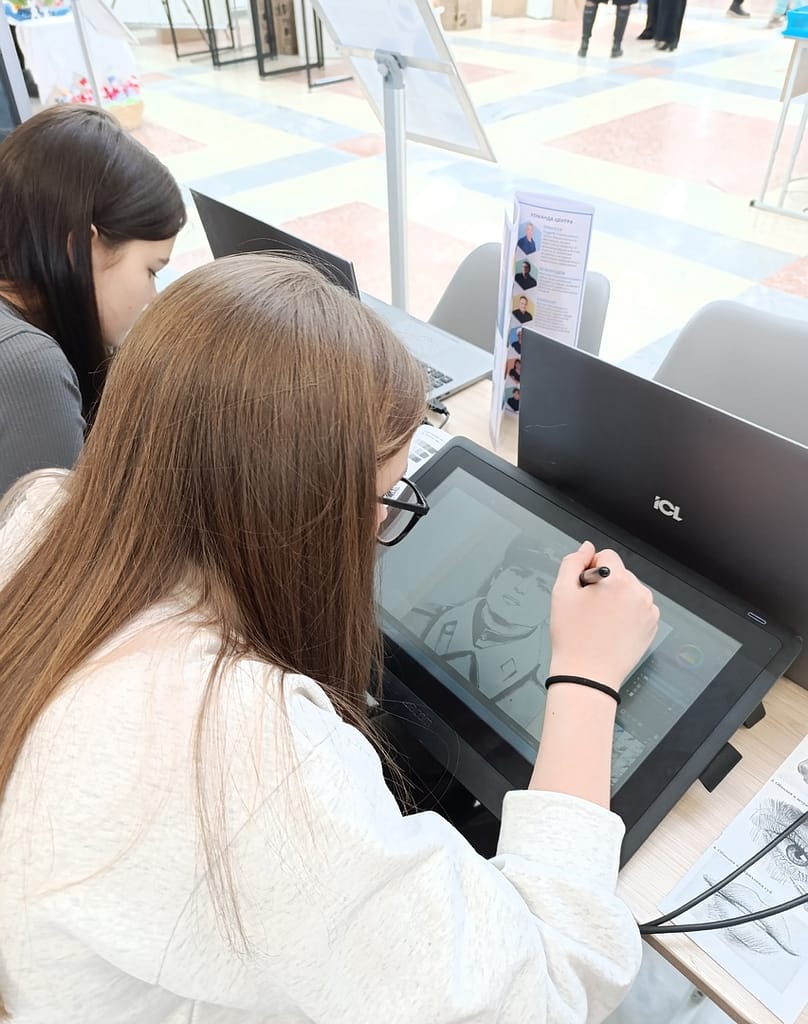 🖼️Давыдов Марк, обучающийся программы «Кибергигиена и работа с большими данными» (руководитель: Куприянова Галина Викторовна) демонстрировал на выставке свой экспериментальный проект по цифровой реконструкции фотопортретов Героев Великой Отечественной войны. Обучающиеся 8 класса МАОУ Гимназия 86 Нижний Тагил Алёна Мишанина и Есения Потапова принесли на выставку портреты своих прадедушек: отлично сохранившуюся фотографию Григория Ивановича Лузина и засвеченный при светокопировании в 40-е годы XX века фотопортрет Алексея Филипповича Егорова. В течении часа Марк научил правнучек Героев приемам цифровой графики и многослойной линейной прорисовки для восстановления утраченных деталей изображения в авторском графическом портрете своих предков. Ценность этого исследования состоит в том, что с помощью изобразительного творчества укрепляется крепкая эмоциональная память потомков Героев с историей своего народа и страны. В дань уважения начинающие IT-худодницы создали штендеры с портретами своих прадедов для Международной акции «Бессмертный полк», бережно выполненив каждый штрих и линию, продолжая в них свою душевную любовь и память о семейных Героях.